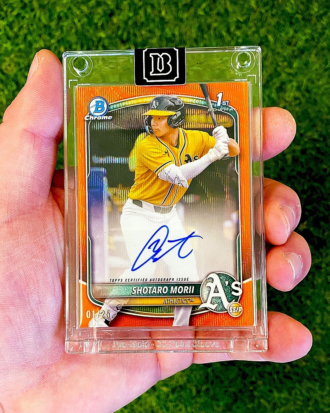 With recessed arrowhead corners and custom sized penny sleeve Included. 25 to a display box; 200 to a case.